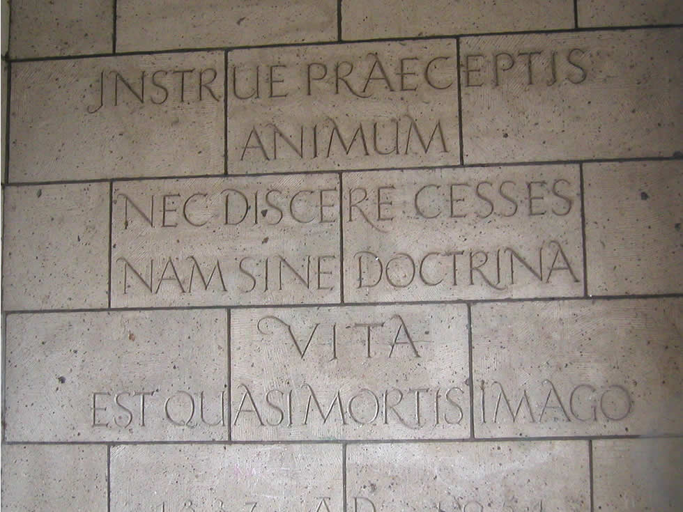 | „INSTRUE PRAECEPTIS ANIMUM NEC DISCERE CESSES NAM SINE DOCTRINA VITA EST QUASI MORTIS IMAGO“ |